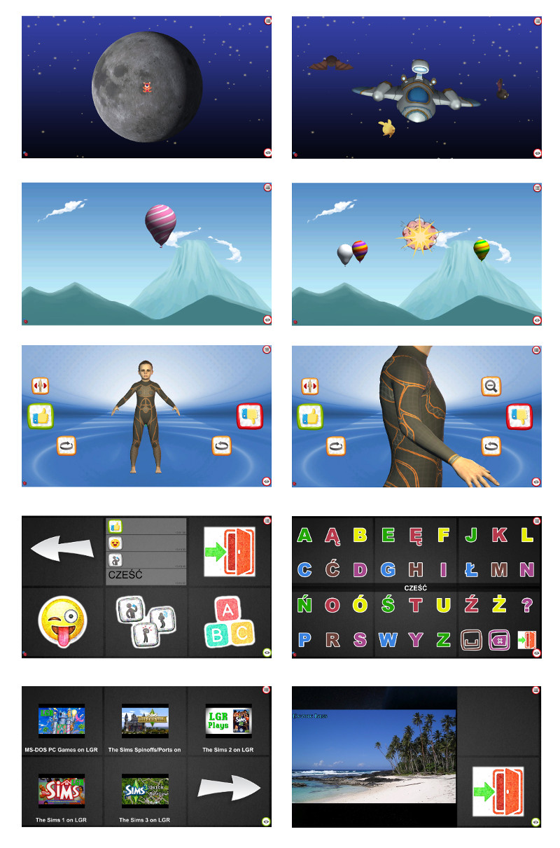 Drugim elementem systemu Okulo jest stworzony przez nas i wolontariuszy program komputerowy dla dzieci, który nazwaliśmy „EyeSpy”, a w j. polskim „Patrzajka”. Właśnie on zawiera wszystkie gry i komunikatory, które dzieci mogą obsługiwać za pomocą samych oczu.