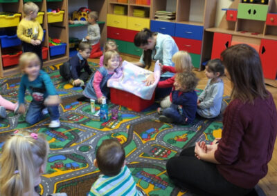Wolontariusze wraz z nauczycielkami przygotowali specjalne zajęcia mające wyjaśnić dzieciom dlaczego mycie zębów jest tak ważne. Umiejętności pracowników działu szkoleń Sygma Bank Polska zostały przetestowane przez naprawdę wymagające audytorium. W trakcie zajęć dzieci bawiły się edukacyjnymi gadżetami zakupionymi specjalnie na tę okazję (mamy nadzieję, że będą one wykorzystywane w przedszkolu przez wiele kolejnych lat).