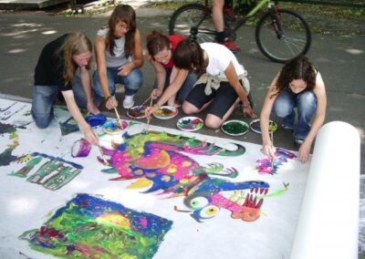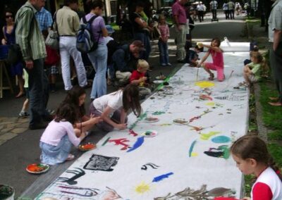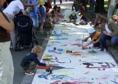 Zabawa była zawsze fantastyczna, a dzieci z pierwszych edycji wracały do nas jako dorośli za rączkę z kolejnym pokoleniem małych artystów. Bardzo Wam wszystkim dziękujemy. Mamy nadzieję niedługo uruchomić archiwum prac i fotografii dokumentujących wszystkie lata naszych spotkań – prace nad nim trwają.